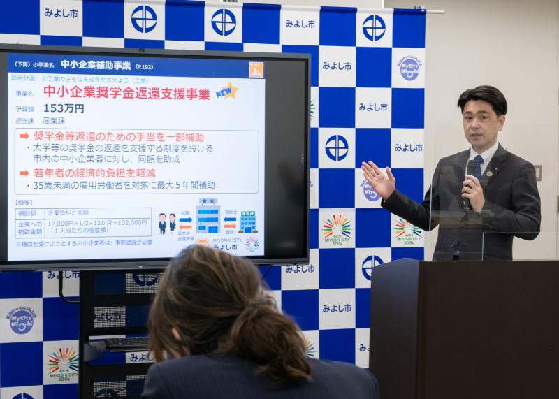小山祐(おやま・たすく)市長が、令和6年第1回みよし市議会定例会に上程予定の令和6年度当初予算(案)における主な新規事業について報道発表しました。
