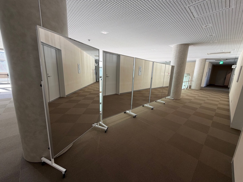 移動式フィルムミラー(5枚)を導入し、ダンスや演劇の練習あるいは姿見として各部屋でご利用いただけます(調理室を除く)。