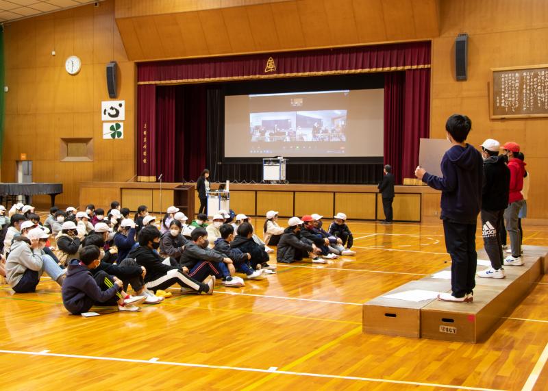 2月15日、友好都市提携を結んでいる北海道士別市の上士別小学校と三好丘小学校がオンライン交流を行いました。これは、士別市の子どもたちとの交流を通して自然環境や文化の違いを感じ、視野を広げるとともに友好を深めることを目的に行われたもの。令和2,3年度と派遣交流が中止となり、何かできる交流を行いたい、という願いから今回実現しました。1~4年生が教室で交流の様子をオンラインで視聴する中、5,6年生の児童は体育館に集まり、それぞれの市や小学校について紹介。「スキーの授業があるよ」「羊がたくさんいるよ」などの士別市の特色を驚いた様子で見ていました。この後、クイズや質疑応答を行い「他にはない三好丘小学校の行事は」「愛知県やみよし市の有名な食べ物は」といった質問が出るなど交流を深めていました。児童の一人は「この交流に向けてみよし市のことをたくさん調べることができてよかったです。コロナが落ち着いたら士別市へ遊びに行ってみたいです」と目を輝かせていました。