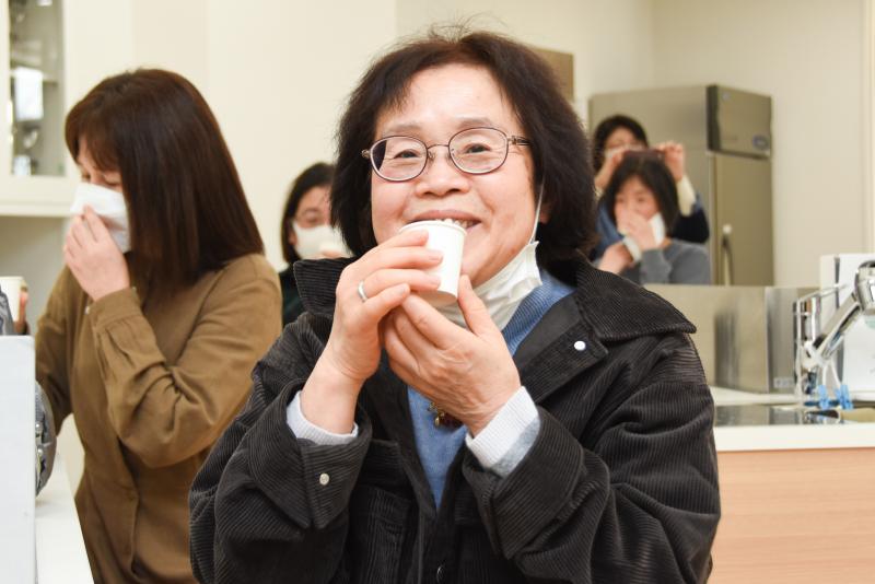 3月10日、サンライブで消費生活講演会「日本のお茶の楽しみ方」が開催され、13人が参加しました。この事業は地産地消の大切さや良質な商品を選ぶ重要性を学んでもらうために行われたもの。手がけているお茶が県内外の品評会で高い評価を得ている茶園の高香園(こうかえん)の園主の野場義尊(のば・よしたか)さんを講師に招き、お茶の生産方法、活用方法の説明を受けました。参加者は、お茶の収穫方法や飲み方など熱心にメモを取っていました。その後野場さんが煎茶、抹茶、ほうじ茶をふるまい、それぞれのお茶を試飲。深みのある味や香りをゆっくり味わいながらお茶を楽しんでいました。参加者の一人は「とても美味しいお茶をいただき感謝しています。自分でも美味しいお茶を入れることが出来たら幸せだなと思います」と話していました。