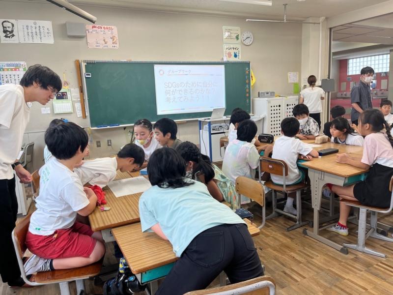 昨年度に引き続き、東海学園大学の学生によるSDGsについての授業が令和5(2023)年9月6日、緑丘小学校で行われました。