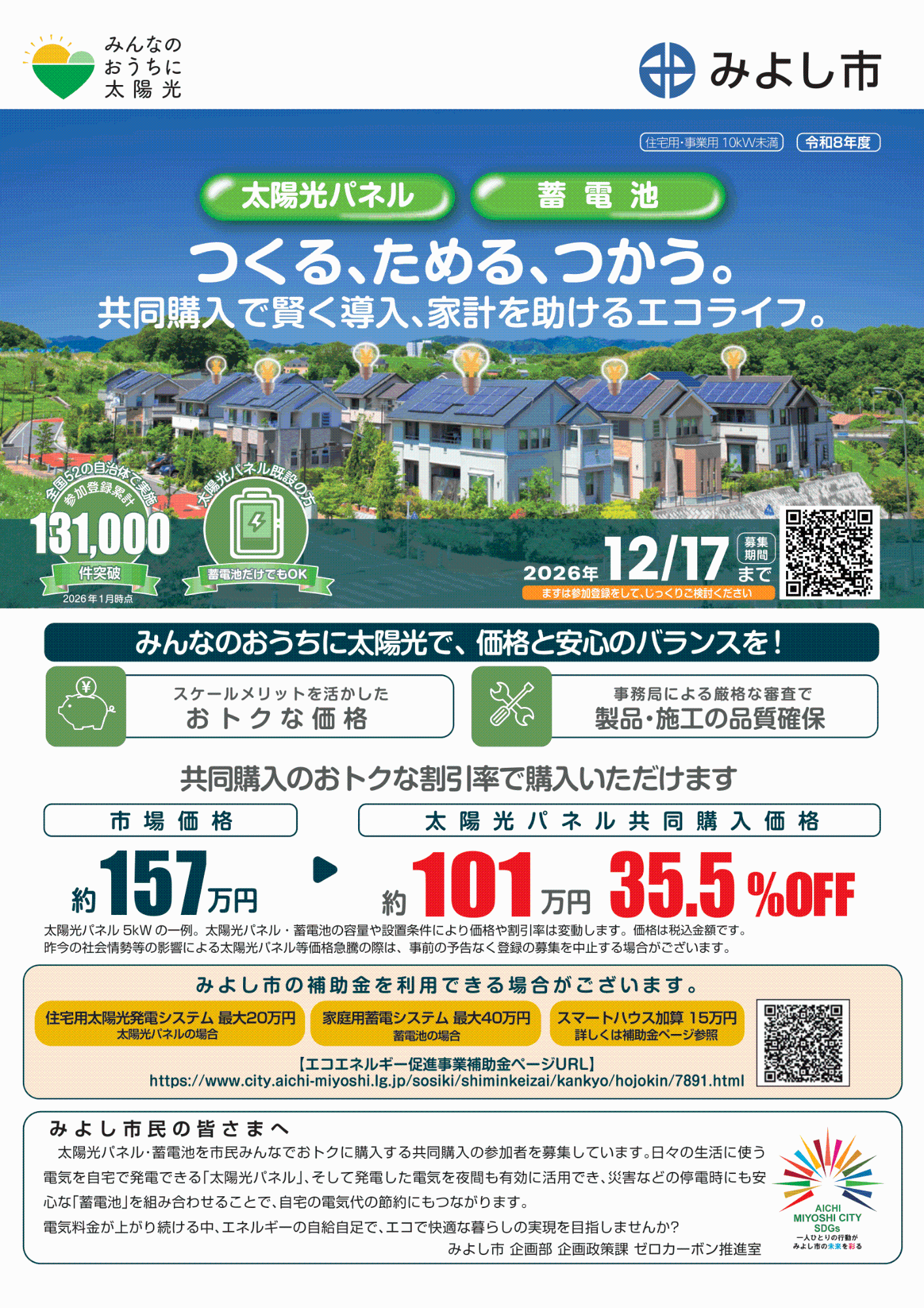 太陽光パネル、蓄電池の共同購入事業チラシ (PDFファイル: 2.5MB)