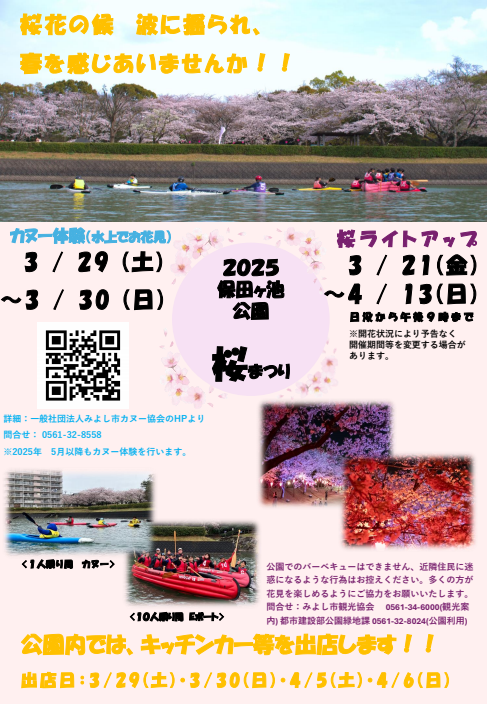 保田ヶ池公園桜まつりカヌー体験(水上でお花見)チラシについて(スポーツ課)