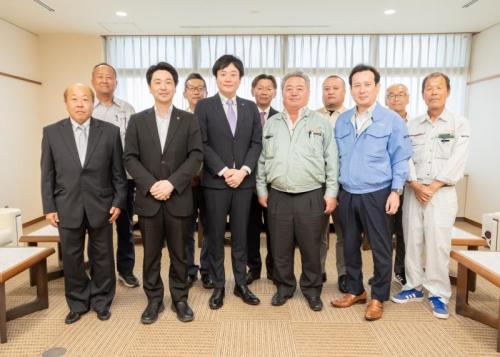 令和6(2024)年5月21日(火曜日)、富山県高岡市の角田悠紀(かくだ・ゆうき)市長が1月1日に発生した令和6年 能登半島地震の救援物資輸送への感謝の言葉を伝えたいと、本市を訪れました。本市および物資を提供したみよし商工会建設部会の皆さん、輸送にご協力いただいたみよし商工会運輸分科会の株式会社カネヨシに対し角田市長から感謝の言葉をいただきました。本市ではこれからも引き続き、被災地への支援を行っていきます。