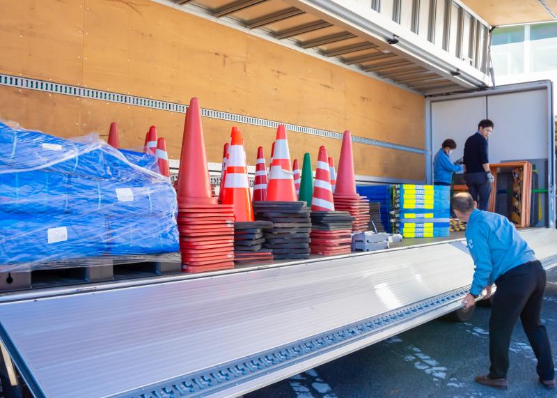 - 救援物資 : A型バリケード70基、カラーコーン314個、コーンバー120本、点滅灯136基、点滅金具119個、ブルシート90枚、単管バリケードの土台42基、単管42基、A型バリケードの重し34個