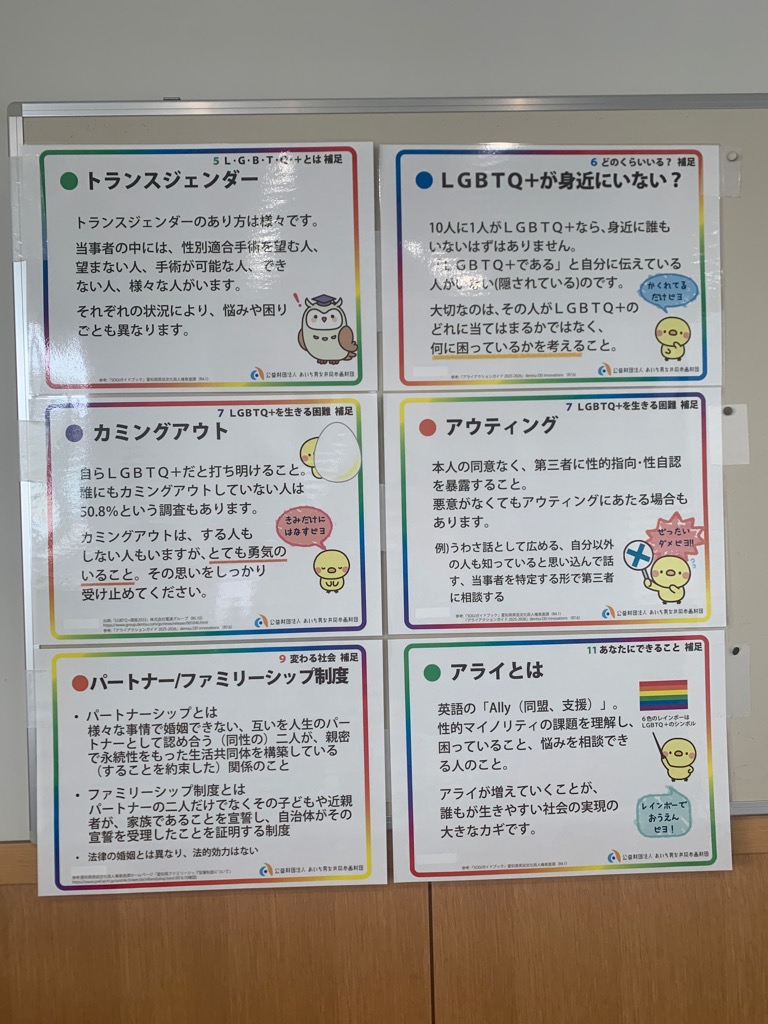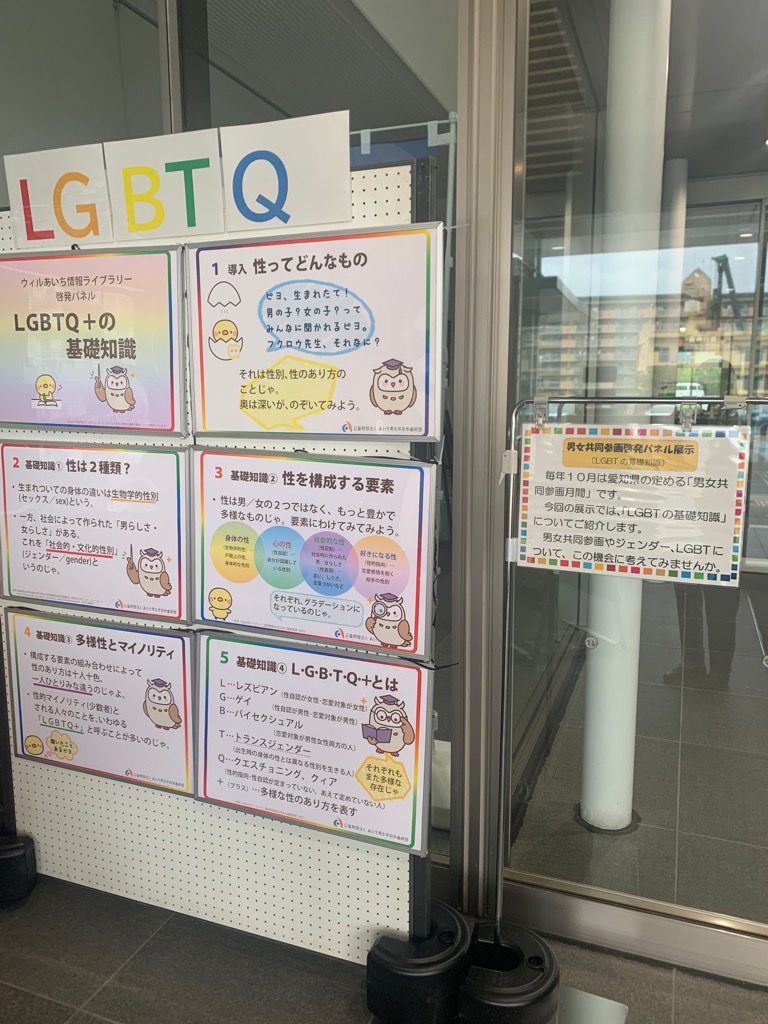 今回男女共同参画啓発事業の一環として、10月1日から10月31日までみよし市役所1階正面玄関にて男女共同参画啓発パネル「LGBTQの基礎知識」を展示しています。